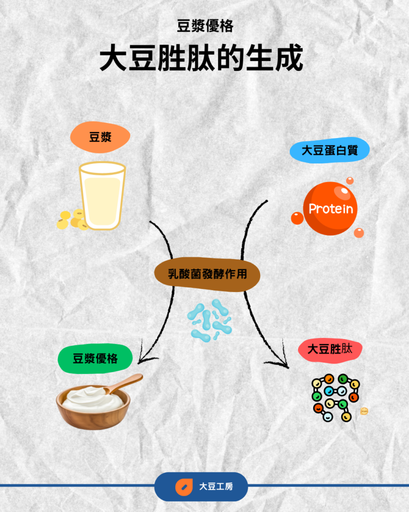 豆漿優格的大豆胜肽,來自乳酸菌對豆漿中大豆蛋白的水解。