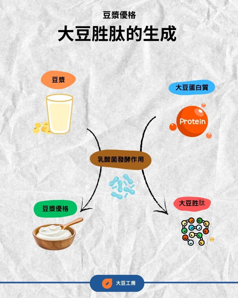 豆漿優格的大豆胜肽,來自乳酸菌對豆漿中大豆蛋白的水解。